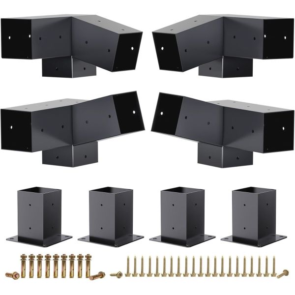 15° Slanted Roof Brackets 75° Pergola Corner Bracket with Post Base Gazebo Kit for 4x4'' Wooden Beams Lumber Patio Sheds